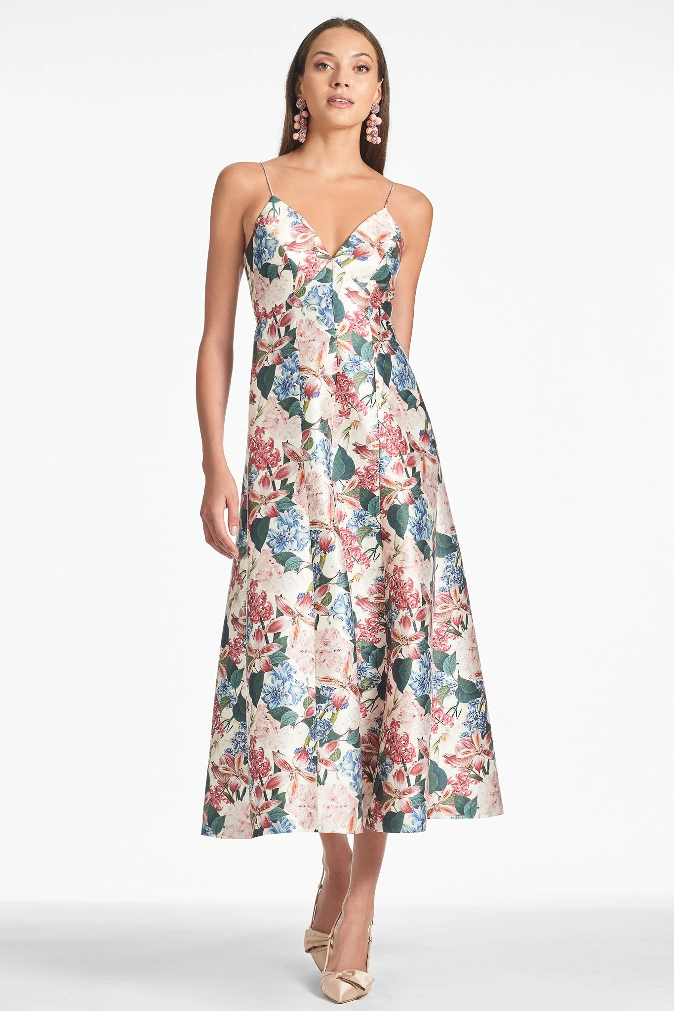 Meet Allesandra: feminine, flirty, and simply fabulous. This fit-and-flare midi dress is made in our signature Stretch Mikado fabric for the most flattering fit. The allover print, Antico Botonico, adds the perfect touch of romance to the already sophisticated silhouette.