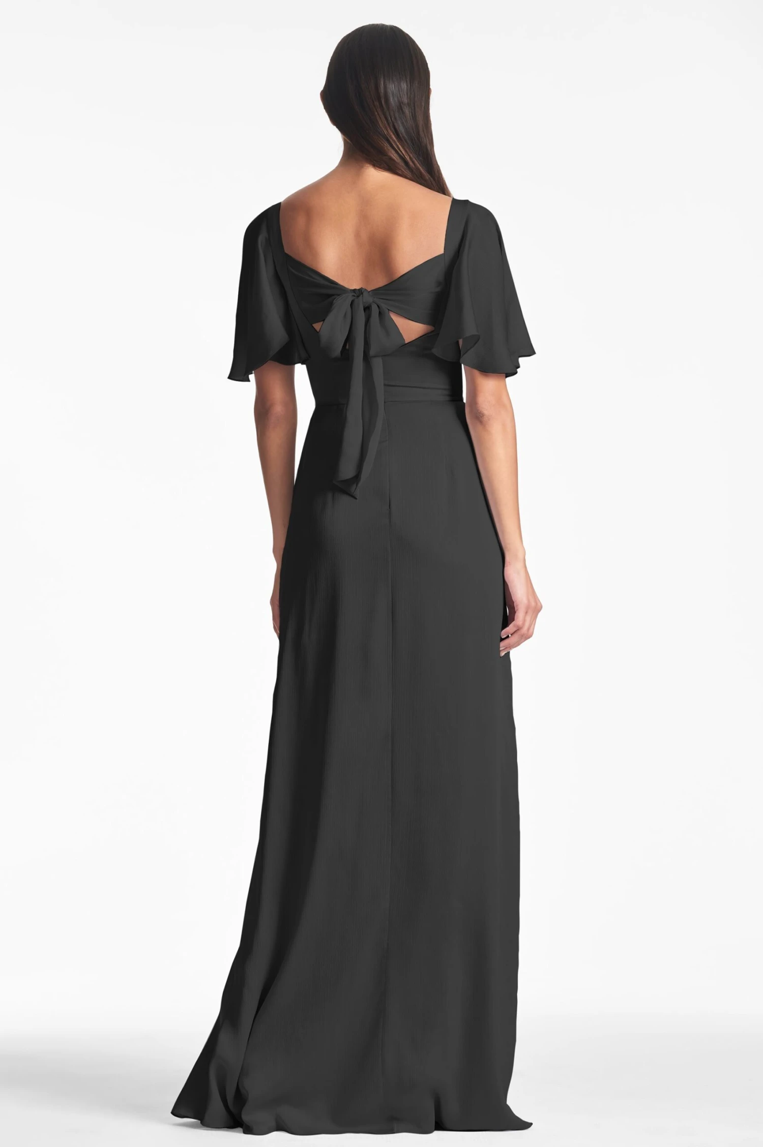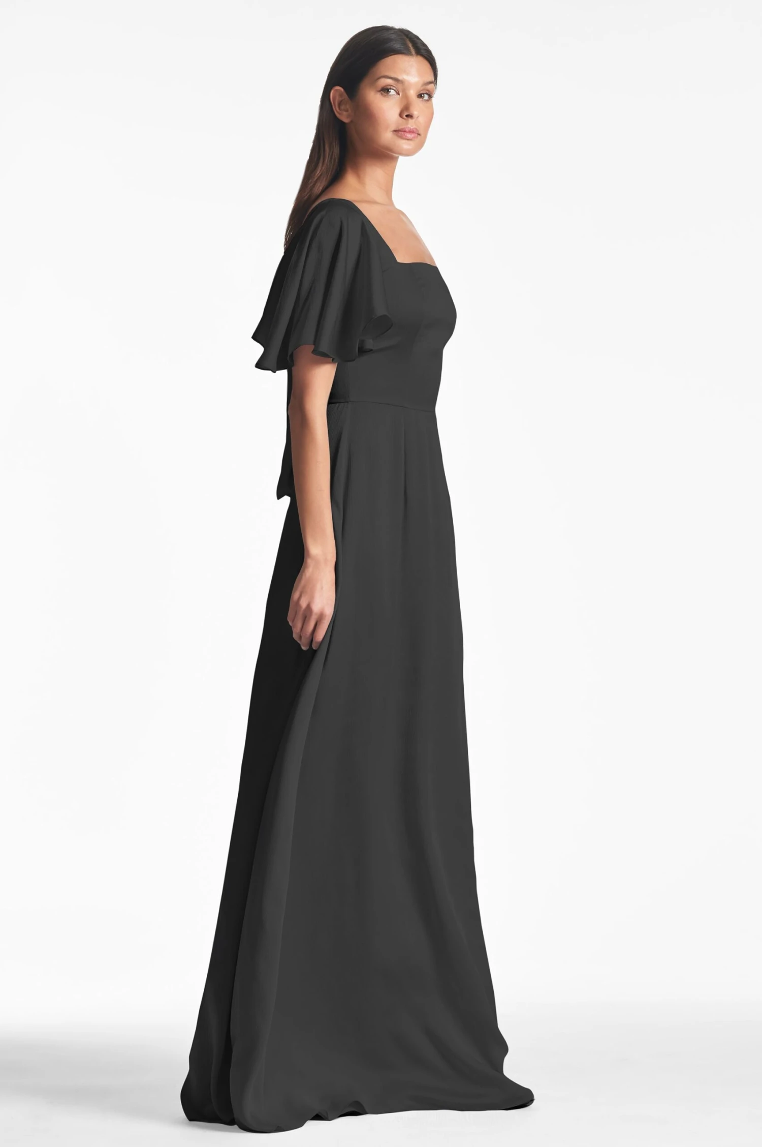 The Aurora Gown, part of our Essential Social collection, is the perfect choice for wedding guests and bridesmaids alike. The flattering silhouette and flutter sleeves offer a classic, timeless look.