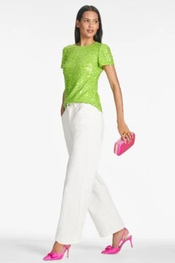 Bette is the perennial party top that every closet needs. Featuring a boxier silhouette of scatter sequins that drape beautifully on the body, she’s as versatile as she is fun. Pair this back to the Leighton skirt for a formal festive look, or throw on some blue jeans to add some sparkle to an otherwise casual ensemble.