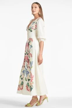 Sienna is a printed chiffon dream. She’s a classic maxi silhouette with a subtle V neckline and smocking at the back. Look no further for your perfect Spring and Summer event dress.